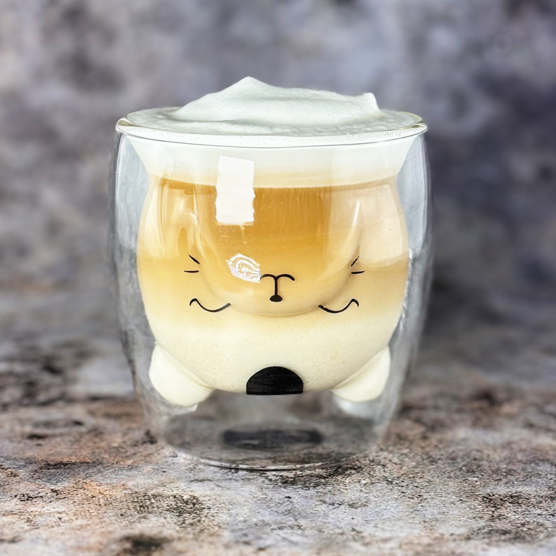 - Motívum: cicaalak (macska fej) belső kontúrral – különleges látvány, amikor ital kerül bele