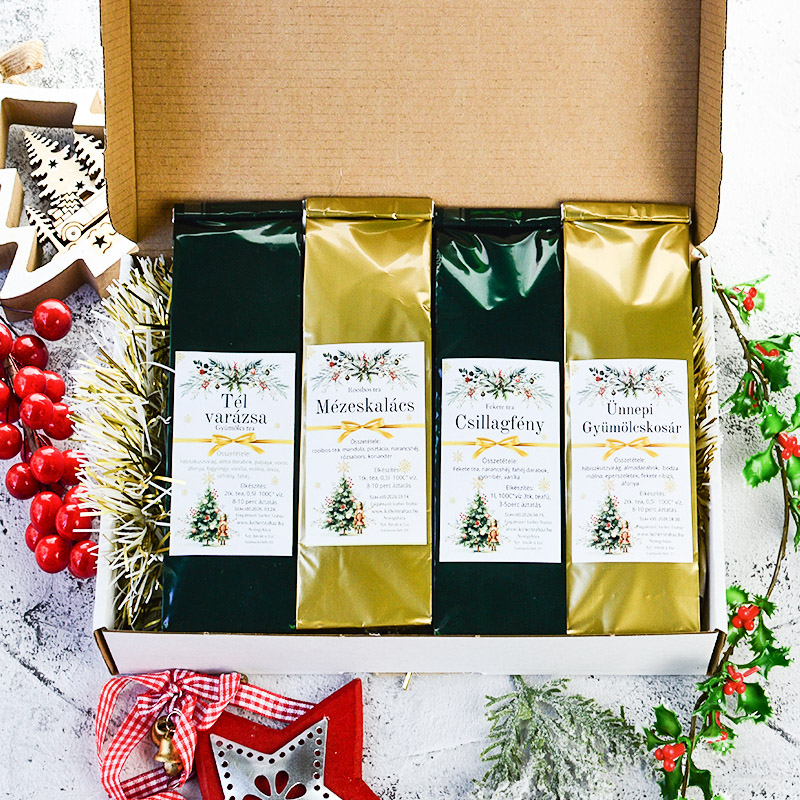 Összességében a karácsonyi szálas tea olyan ajándék, amely egyszerre praktikus, elegáns, személyre szabható és egészséges, miközben tökéletesen tükrözi az ünnep meghittségét és örömét.