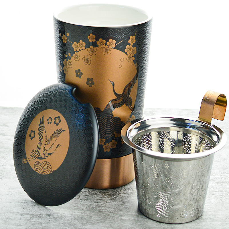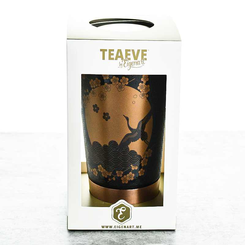 Ez a dekor egy klasszikus téma modern értelmezése. A hagyományos ázsiai dizájnelemek, arany alkalmazások és emelt hatások kombinációja alkotta meg ezt a fekete színű teás csészét. Az arany színű rozsdamentes acél talp, valamint a rozsdamentes acél szűrő részletei ezt a benyomást teszik teljessé. A Teaeve a kényelem és a jólét érzését nyújtja. Akár otthon a kanapén, akár az irodában.
