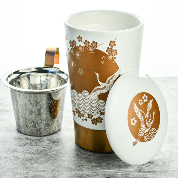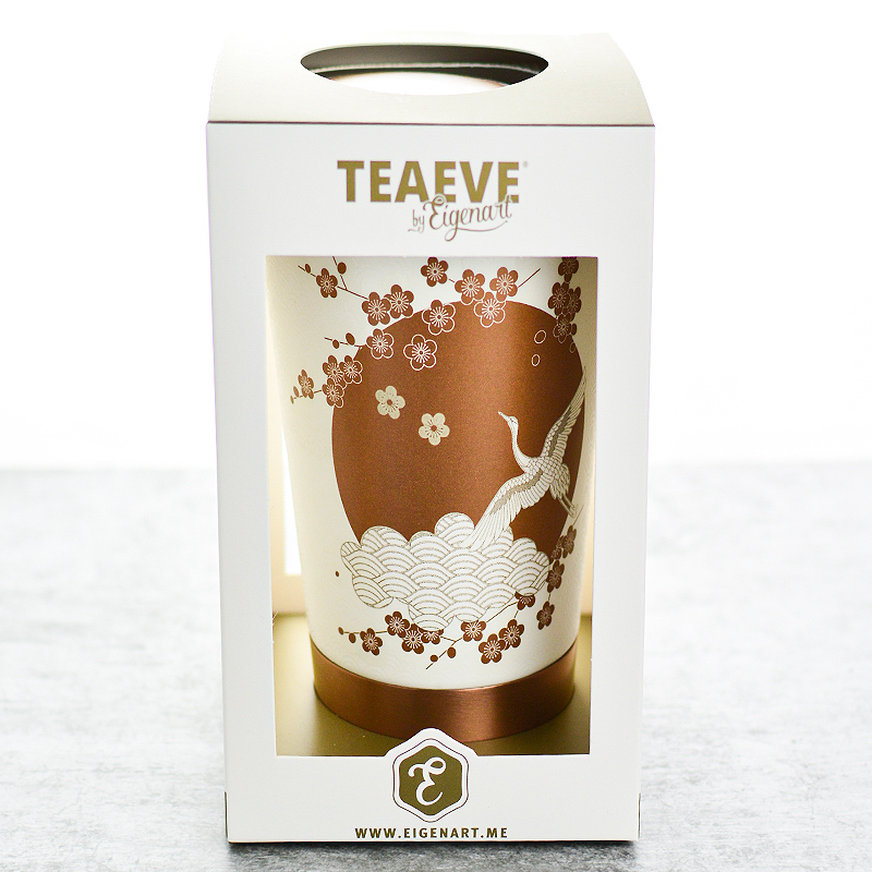Ez a dekor egy klasszikus téma modern értelmezése. A hagyományos ázsiai dizájnelemek, arany alkalmazások és emelt hatások kombinációja alkotta meg ezt a fehér színű teás csészét. Az arany színű rozsdamentes acél talp, valamint a rozsdamentes acél szűrő részletei ezt a benyomást teszik teljessé. A Teaeve a kényelem és a jólét érzését nyújtja. Akár otthon a kanapén, akár az irodában.
