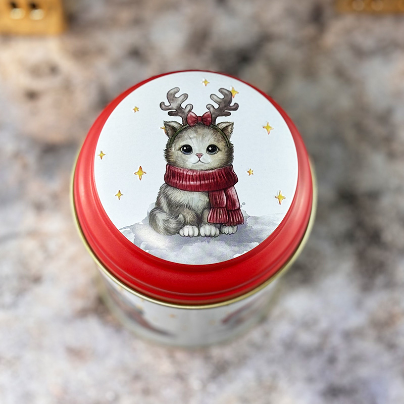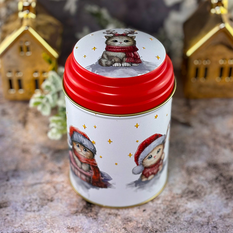 Dekoratív és hangulatos – A dobozon elmesélt jelenet (cicák, ajándékok, karácsonyesti hangulat) finoman idézi az ünnepi meghittséget, miközben stílusos kiegészítőként szolgál.