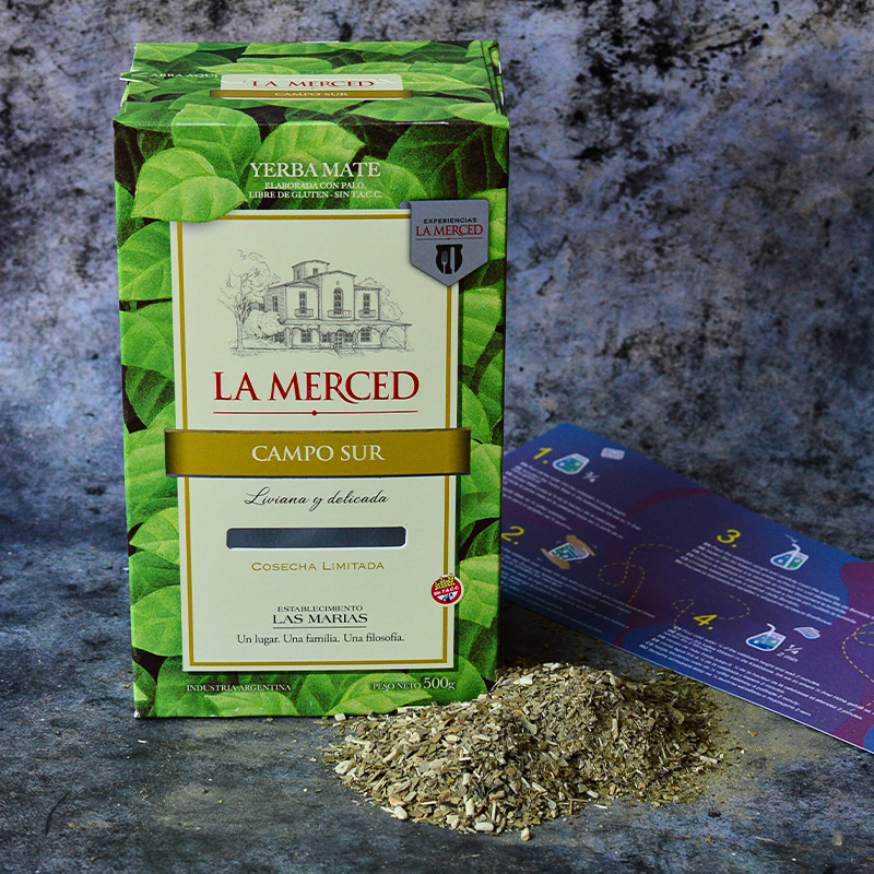 A La Merced egy prémium argentin yerba sorozat, kivételesen jó minőségű és korlátozott gyártású. A La Merced Campo Sur a bolygó legdélibb yerba mate termesztési területeiről származik, és ez a vonal legpuhább mate. A természetes yerba finom, gyengéd és sima íze és a közepes vágás teszi a Campo Sur-t nagyszerű választássá azok számára, akik csak most kezdik felfedezni a mate világát.