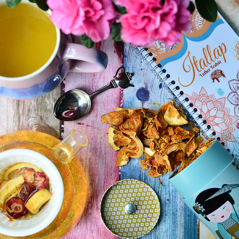 - Szálas gyümölcstea (bogyós gyümölcs, citromos, barackos stb.)