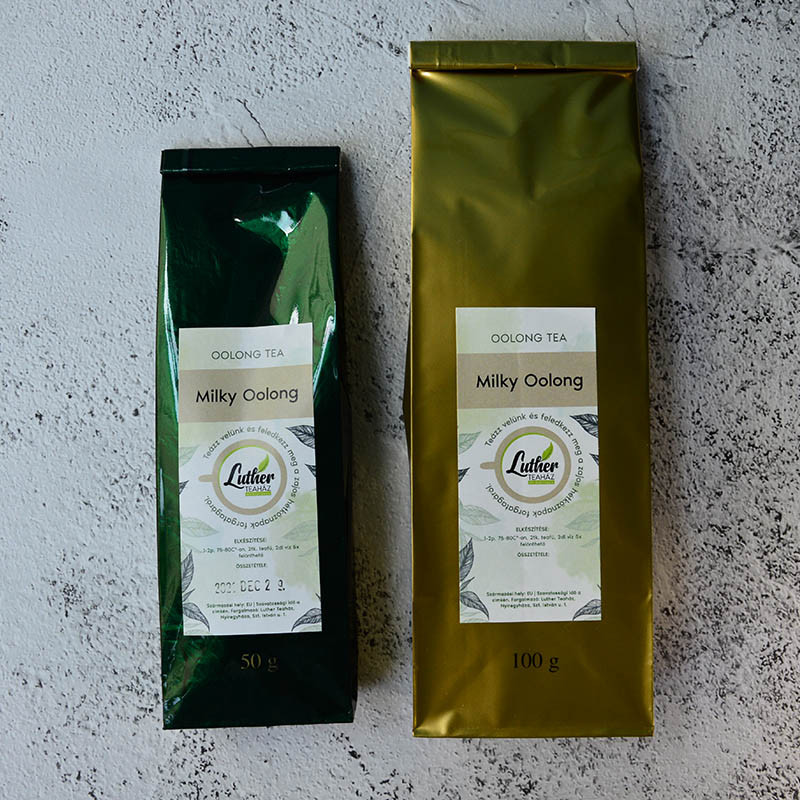 Összetétele: oolong tea. Leírás: A tea tejszínes, tejkaramellára emlékeztető ízét egy különleges eljárásnak köszönheti. A tealeveleket a szedés után hengerlik, majd tejgőz felett gőzölik. Így a tealevelek magukba szívják a kellemes tejszínes illatot. Ezután apró kis golyó formára sodorják, majd szárítják a tea leveleket. Elkészítés: 1-2p. 75-80 °C-on, 2tk. teafű, 2dl víz 5x felönthető. Miért igyunk Oolong/Wulong teát? Az oolongok főzete a termővidékek mikroklímájának és talajadottságainak köszönhetően ásványi anyagokban, vitaminokban és nyomelemekben gazdag (nitrogén, foszfor, kálium) és más hasznosítható elemeket (aminosavak, poliszacharidok, polifenolok) nagy mennyiségben tartalmaz. Az oolong tea elfogyasztva egyrészt egészséges lökést ad a szervezetünknek, másrészt biztosítja hosszú távú vitalitásunkat. Az oolong teákat a teák pezsgőjének is hívják, hiszen fogyasztásuk nemcsak egészséges, de különleges élvezetet, gasztronómiai örömöt is nyújt, ezzel a teakultúra legváltozatosabb és legizgalmasabb részét képviselik. Mivel félig zöld, félig fekete teáról van szó, a zöld teákra jellemző frissesség mellett az oxidáltabb fajták érettsége és aromagazdagsága (rózsa, aszalt gyümölcsök) is megjelenik a teában.