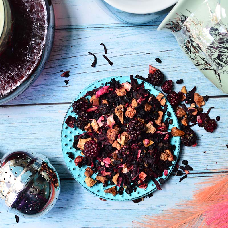 - bodza, hibiszkuszvirág, alma darabok, fekete ribizli, természetes aroma, szeder, eper darabok, málna darabok.