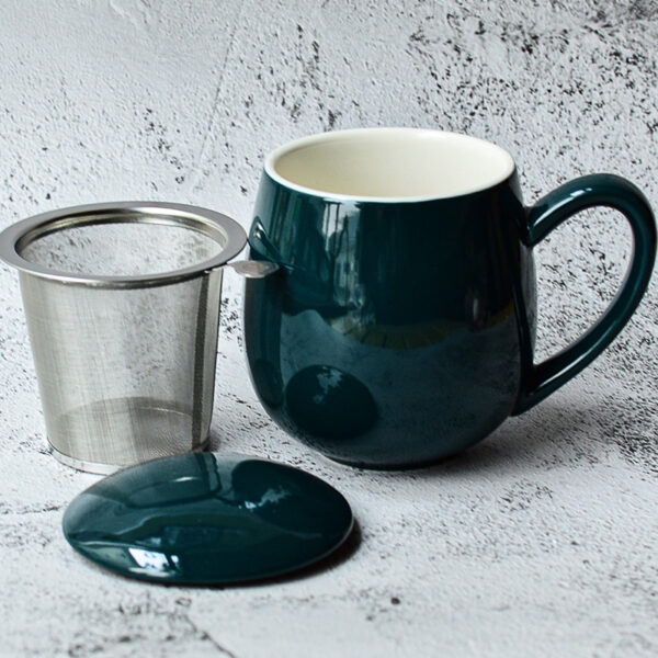 Ez a sötétzöld csésze gyönyörűen kidolgozott, egyszerűségével és eleganciájával ragyog. A tárgy kerek formája kényelmesen fogható, a hozzáillő rozsdamentes acél szűrő pedig lehetővé teszi kedvenc teájának egyszerű és egyszerű elkészítését. A fényes szín vonzó és kiegyensúlyozott megjelenést kölcsönöz ennek a csészének.